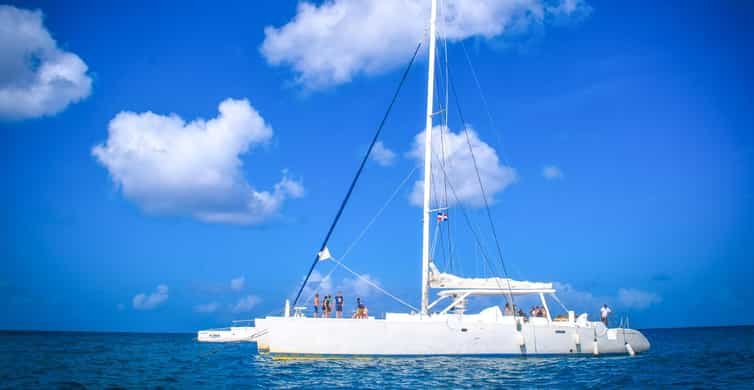 At 2:35 PM, it’s time to begin the journey back. You’ll board a lively catamaran for the return ride to Bayahibe, where the ambiance transforms into a joyous celebration. Dance to upbeat music and mingle with fellow travelers, making the 1.5-hour voyage back an exhilarating experience.