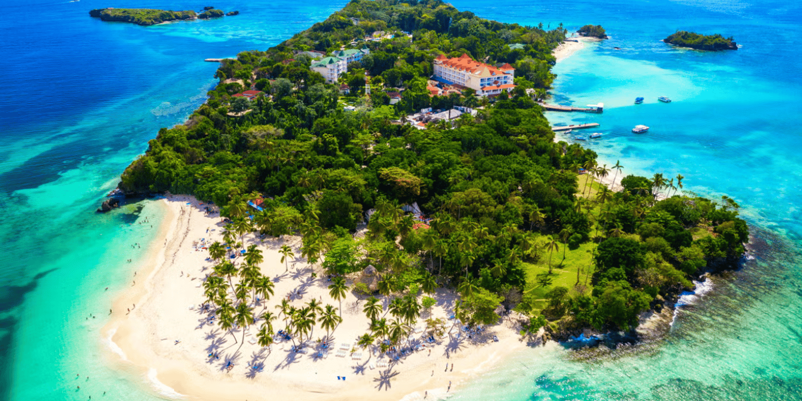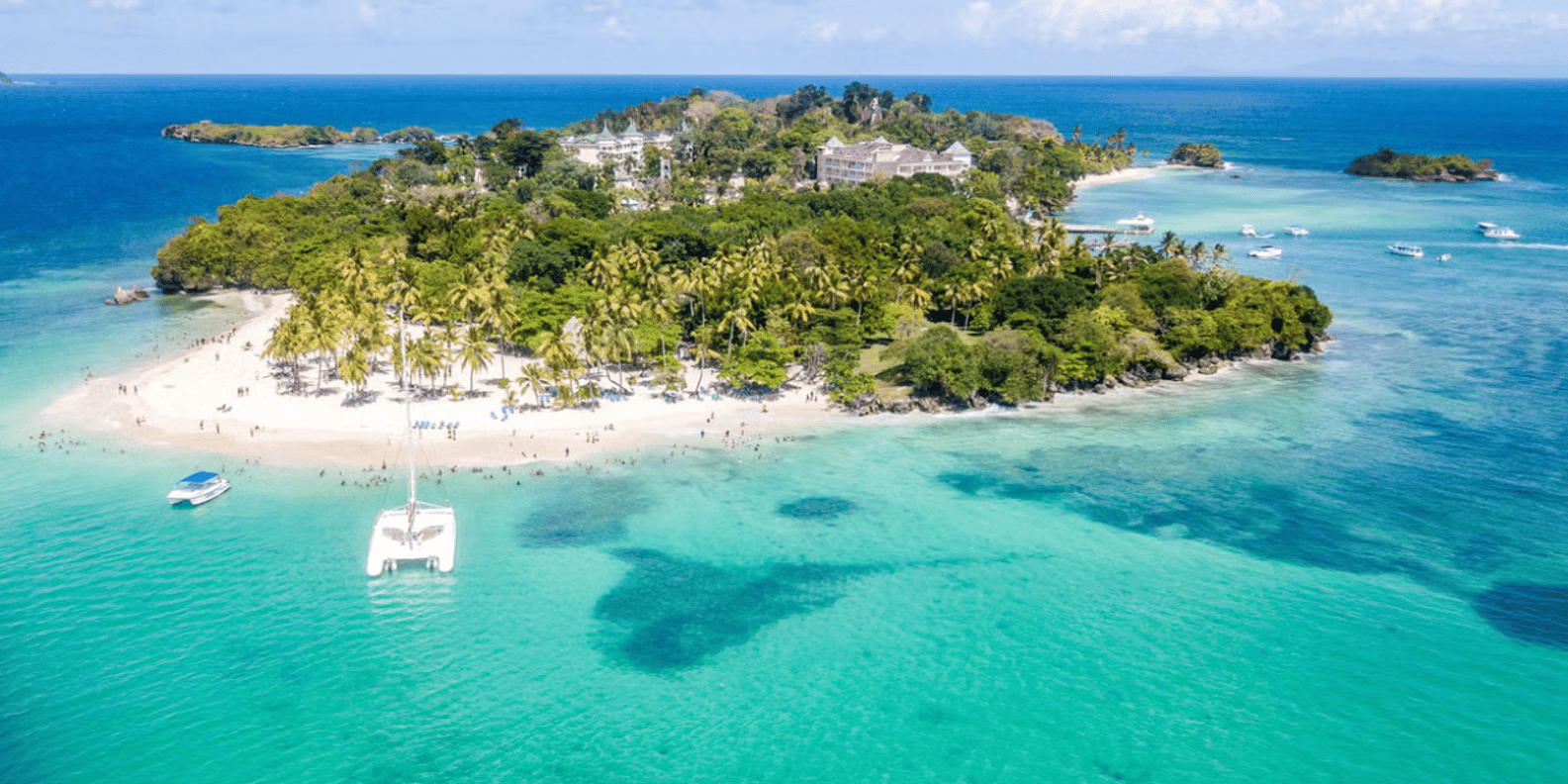 Next, we will board a catamaran to reach Cayo Levantado. This idyllic setting will be the perfect place to enjoy a piña colada, chin-chin!