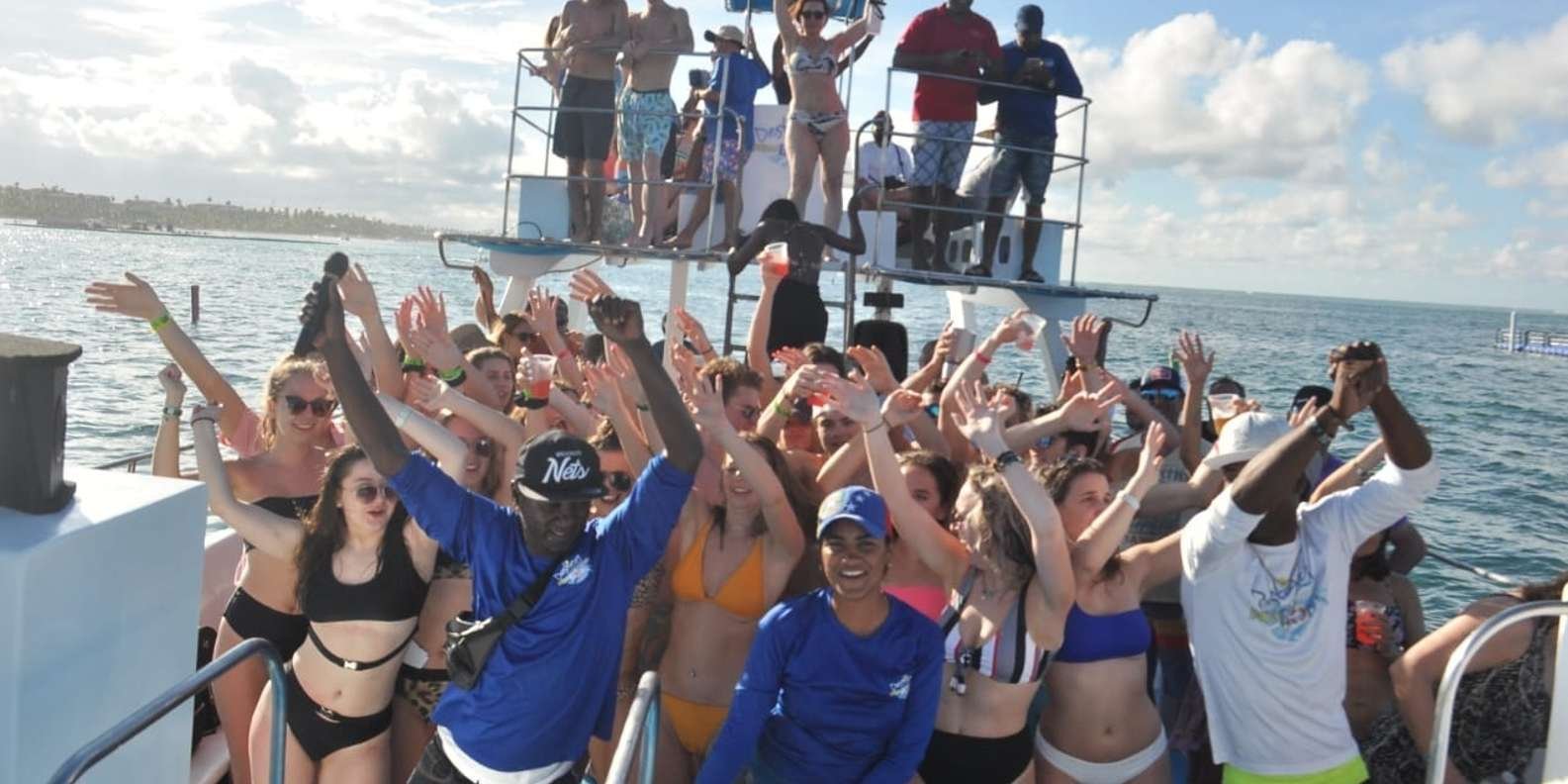 Afterwards, cruise up the coast to the natural pool; a sandbank where visitors can enjoy clear shallow waters and take part in fun water activities and competitions organized by our friendly crew and animation team.  Onboard, enjoy unlimited beverages including beer, rum, and mamajuana, as well as a selection of fresh fruit and snacks. Dance the afternoon away to local and international hits and enjoy the sun’s last rays over the Caribbean Sea.