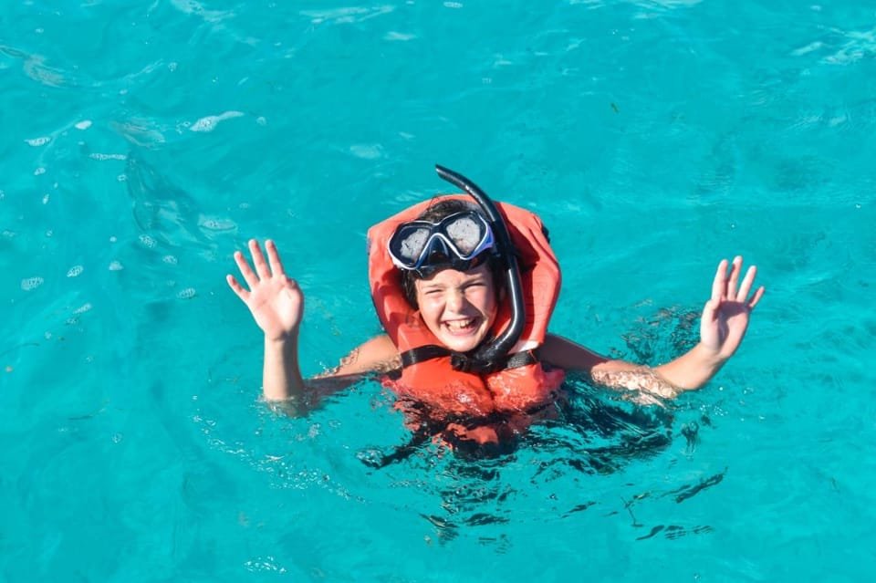 Set sail, cruising through azure waters towards the island’s pristine shores. Stay hydrated during the day with soft drinks or indulge with some alcoholic beverages Along the way, revel in a 45-minute stop at the enchanting Natural Pool, where crystal-clear waters and starfish await.