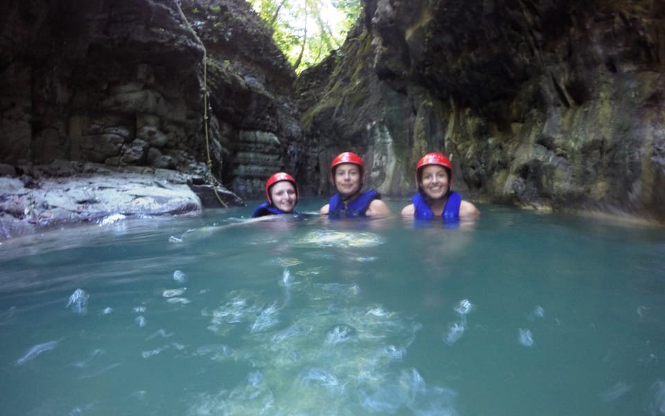 A moderate 45-minute uphill hike through a beautiful jungle landscape gets you to the 12th waterfall. From there you head back downriver and you jump, slide, and swim your way through a series of spectacular waterfalls, canyons, and pools. The tour includes jumps of up to 25 feet (8 meters), however, there is another way down if you don’t feel like jumping.